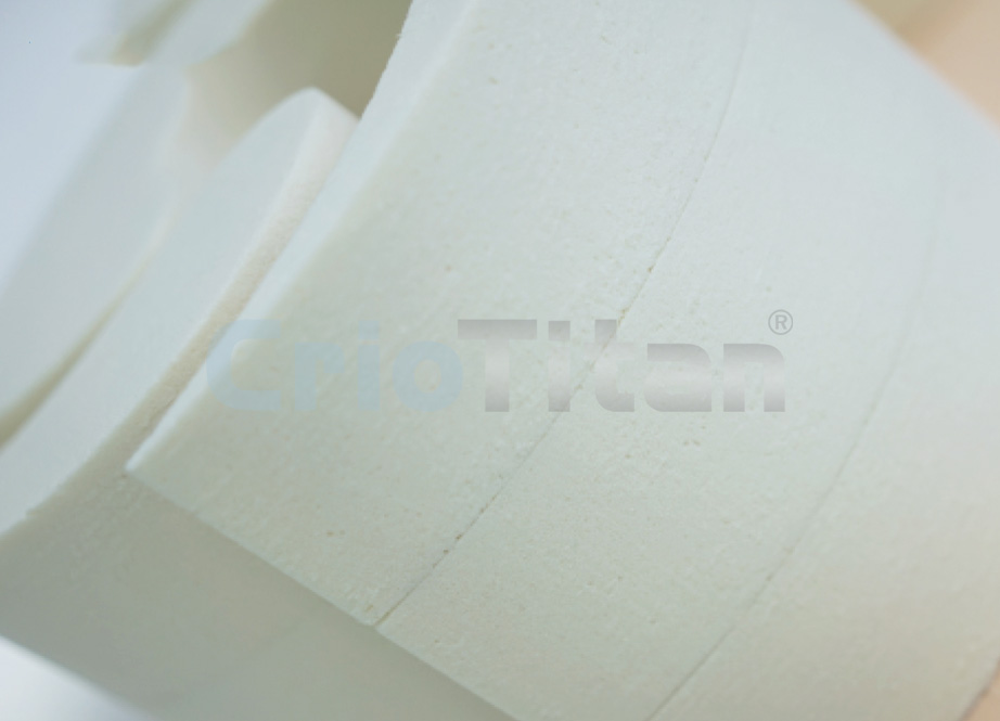 CRIOFOAM分為常規(guī)硬質(zhì)聚氨酯泡沫(PUF)和纖維增強硬質(zhì)聚氨酯泡沫(R-PUF ))。PUF采用連續(xù)大塊泡或者模塑泡形式制備。R-PUF通過在發(fā)泡過程在線植入連續(xù)纖維氈(CFM),泡沫生長過程纖維氈逐漸蓬松并均勻分散于泡沫內(nèi),實現(xiàn)超低溫下良好的尺寸穩(wěn)定性和優(yōu)異的力學(xué)增強,對于泡沫板材的握釘力具有明顯提升。